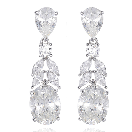Oval Shape And Pear Shape Diamond G Cubic Zircon Rhodium Silver Earring
