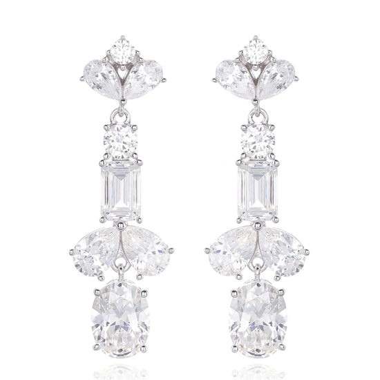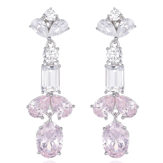 Oval Shape And Pear Shape Diamond Pink Cubic Zircon Rhodium Silver Earring