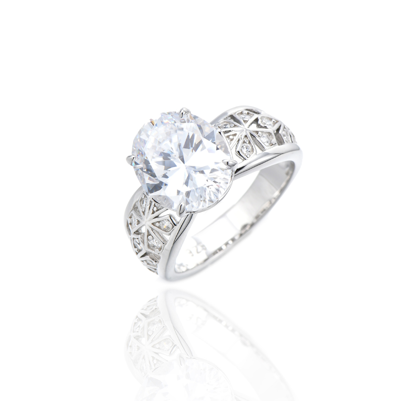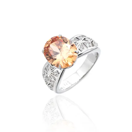 Oval Shape Champagne And Round White Cubic Zircon Rhodium Silver Ring