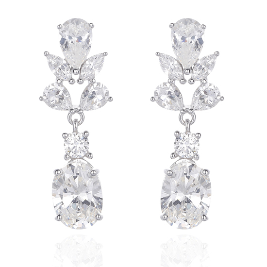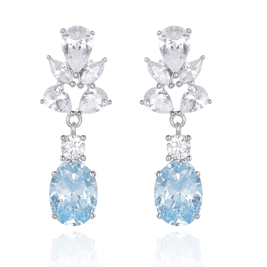 Oval Shape Diamond Blue And Pear Shape White Cubic Zircon Rhodium Silver Earring