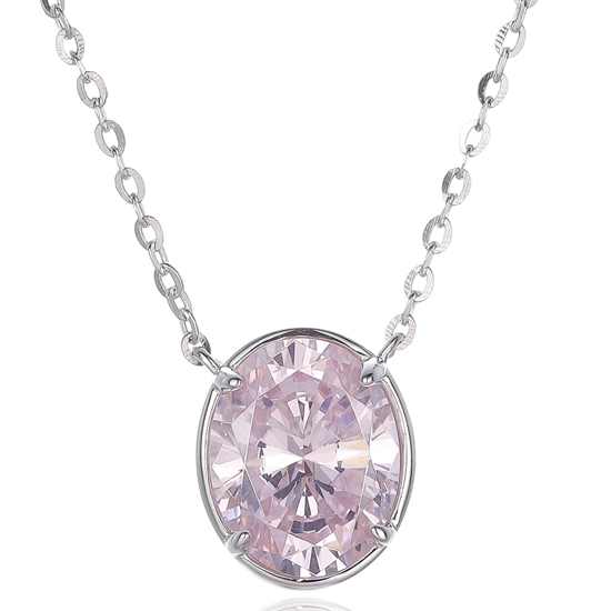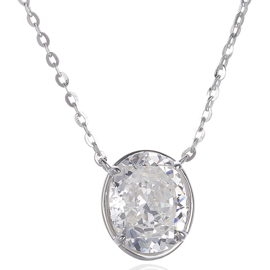 Oval Shape Diamond G And Round White Cubic Zircon Rhodium Silver Necklace