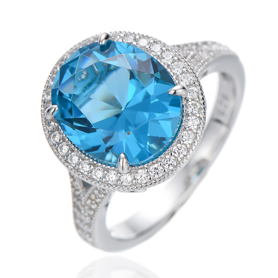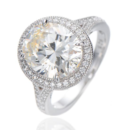Oval Shape Diamond G And Round White Cubic Zircon Rhodium Silver Ring