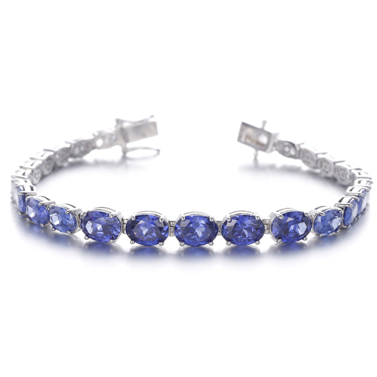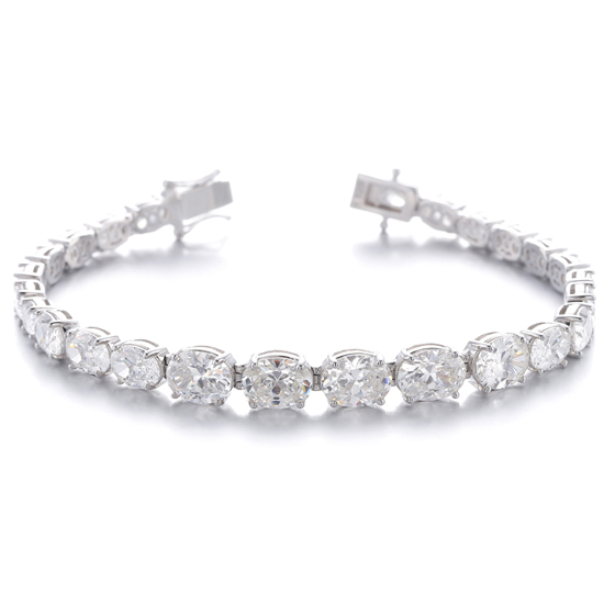 Oval Shape Diamond G Cubic Zircon Rhodium Plating Silver Bracelet