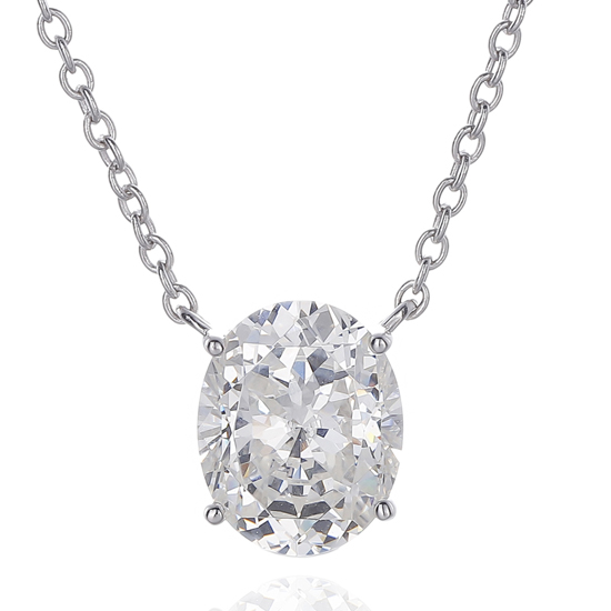 Oval Shape Diamond G Cubic Zircon Rhodium Silver Necklace