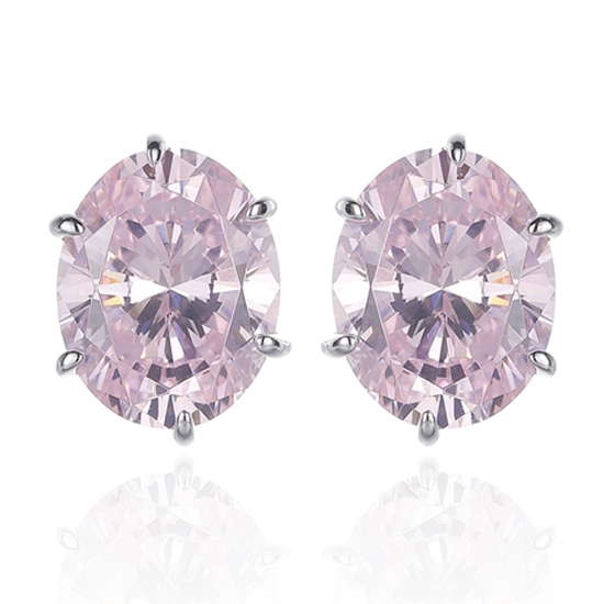 Oval Shape Diamond Pink And Round White Cubic Zircon Rhodium Silver Earring