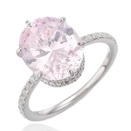 Oval Shape Diamond Pink And Round White Cubic Zircon Rhodium Silver Ring