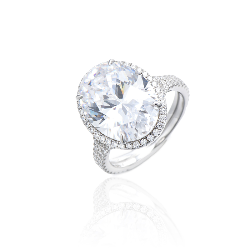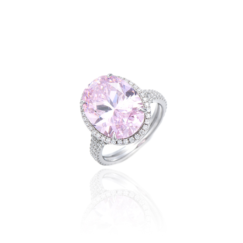 Oval Shape Diamond Pink And Round White Cubic Zircon Rhodium Silver Ring