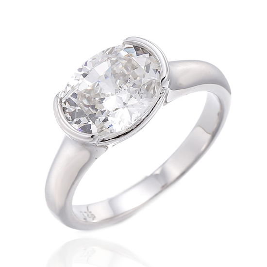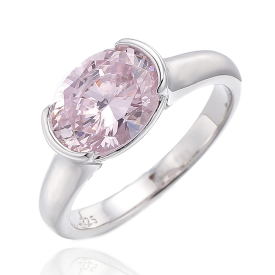 Oval Shape Diamond Pink Cubic Zircon Rhodium Silver Ring
