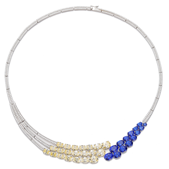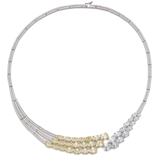 Oval Shape Diamond Yellow And White Cubic Zircon Rhodium Silver Necklace