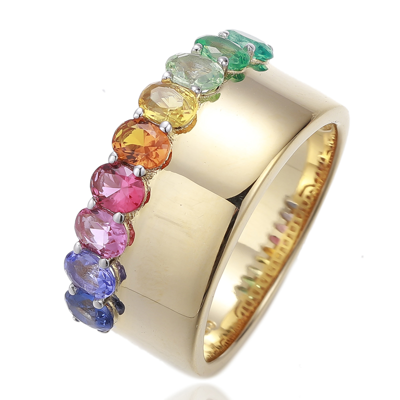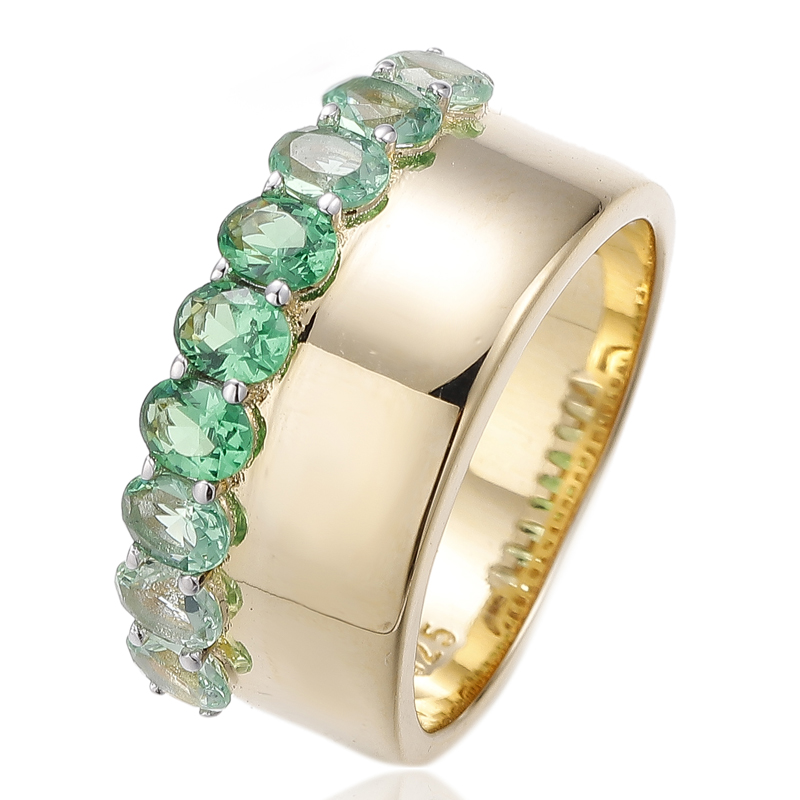 Oval Shape Green Gradient Cubic Zircon Silver Ring With Gold Plating