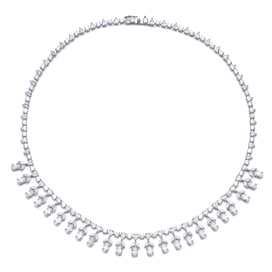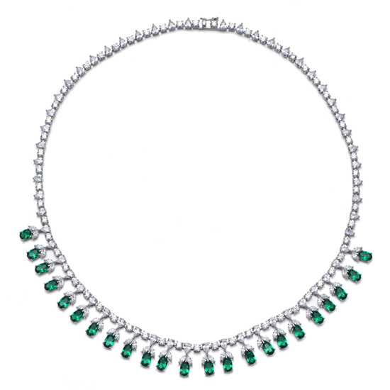 Oval Shape Green Nano And Marquise White Cubic Zircon Rhodium Silver Necklace