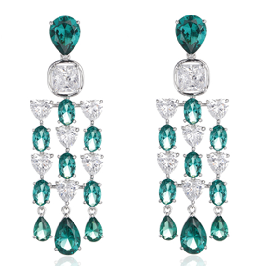 Oval Shape Green Nano And White Cubic Zircon Rhodium Silver Earring