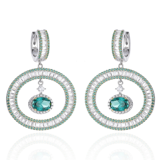 Oval Shape Green Nano And White Cubic Zircon Silver Earring With Rhodium And Glod Plating