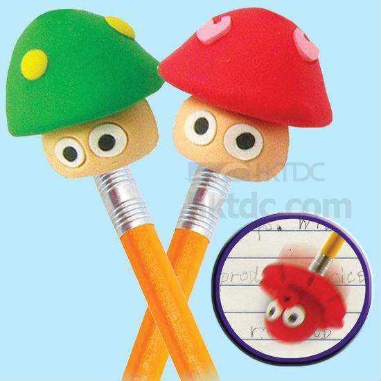 Showcased here is a pair of toy erasers in eye-catching green and red. The cute mushroom design adds an adorable touch. Decorate your desk with these toy erasers.