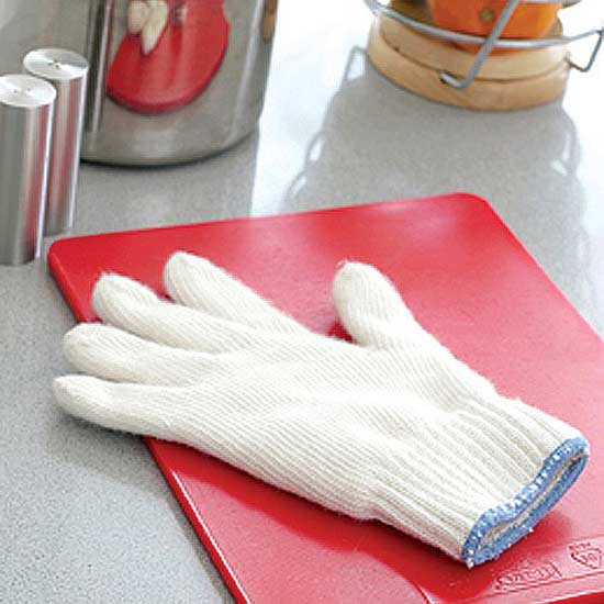 The featured oven glove is made of advanced heat-resistant material to withstand temperatures of up to 350°. It allows dishes to be handled straight from the oven. This glove is also great for barbecue or removing hot light bulbs.