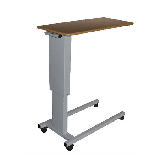 This over-bed table is delicately constructed of tough steel for a sturdy structure. The exterior of this piece of furniture is coated with scratch- and chip-resistant material for prolonged use. This over-bed table comes in handy as patients take medicine or eat.