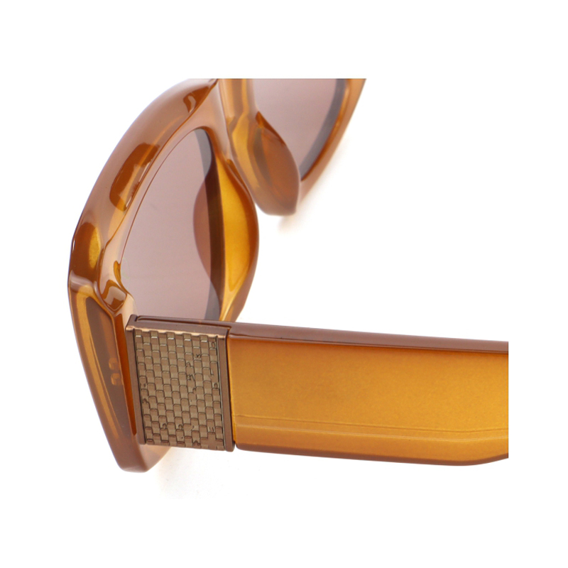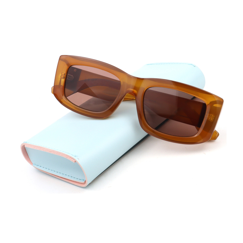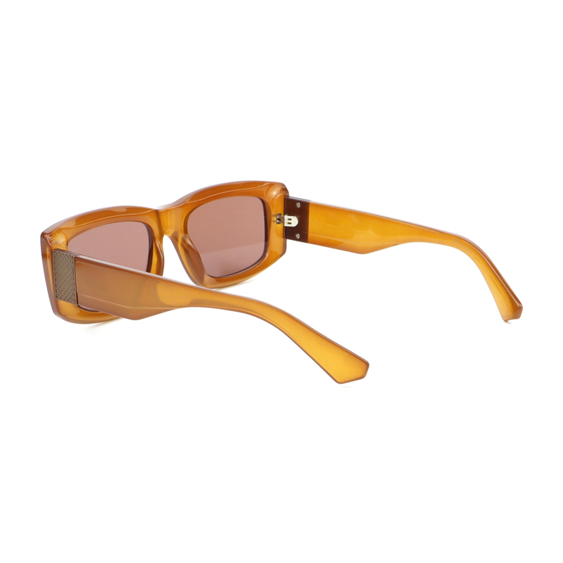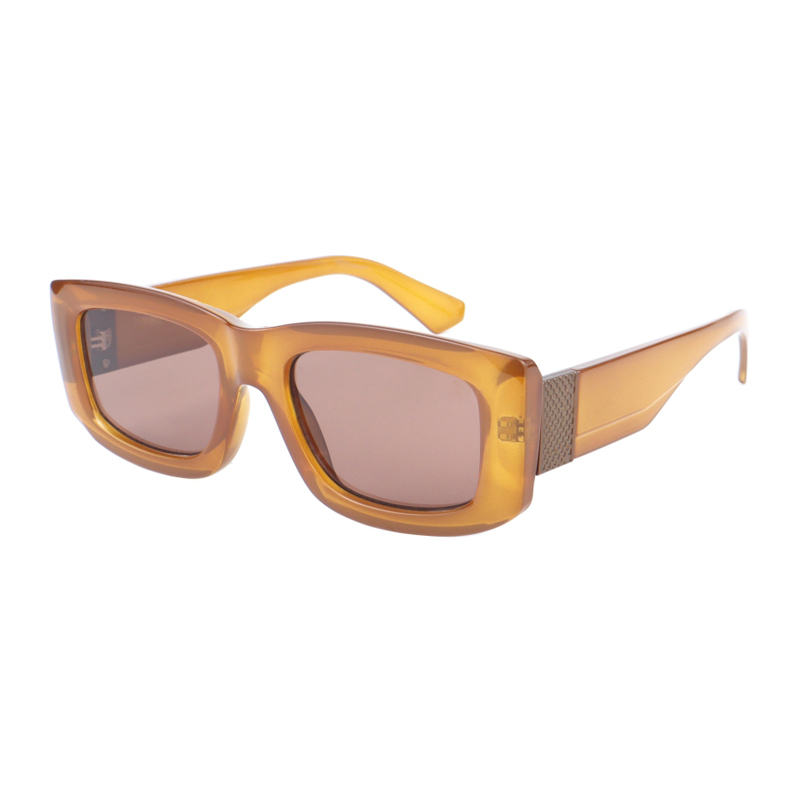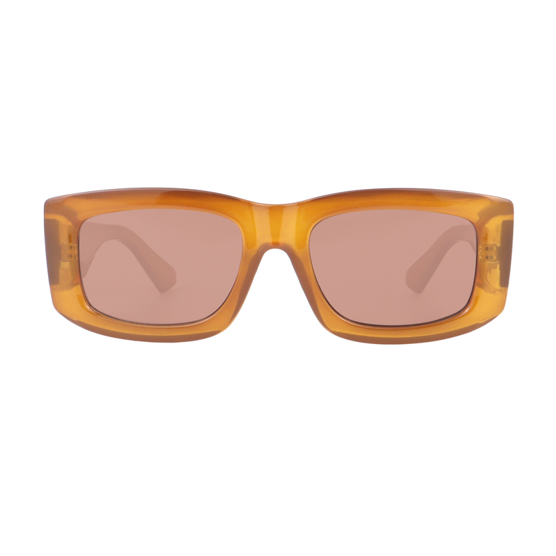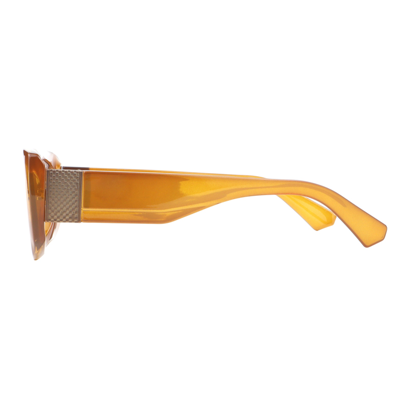 The material used to create these sunglasses is of high quality, ensuring both durability and comfort. The frame is constructed from lightweight and durable plastic that can withstand the wear and tear of daily use. The lenses are made from high-grade polycarbonate, which is shatterproof, scratch-resistant, and provides clear vision without distortion. The temple arms are also equipped with comfortable nose pads for extended wearability.