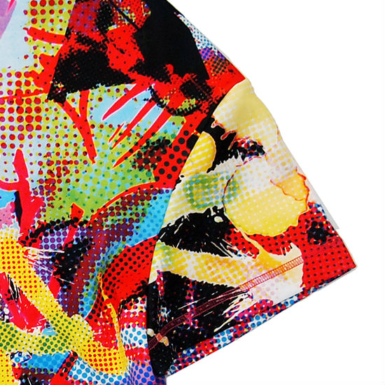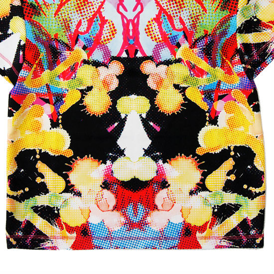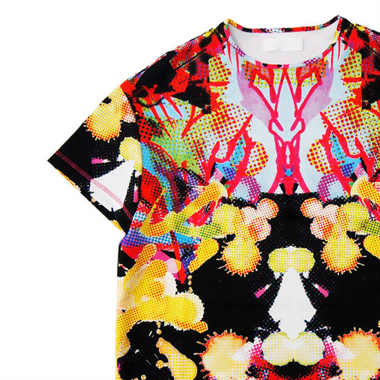 Displayed here is a very high quality 100% polyester T-shirt. Eye-catching and dynamic with a burst of bright vivid colors, the T-shirt comes with a gorgeous abstract print with brushing effects. You can team this fashionable T-shirt with your favorite trousers or jeans.