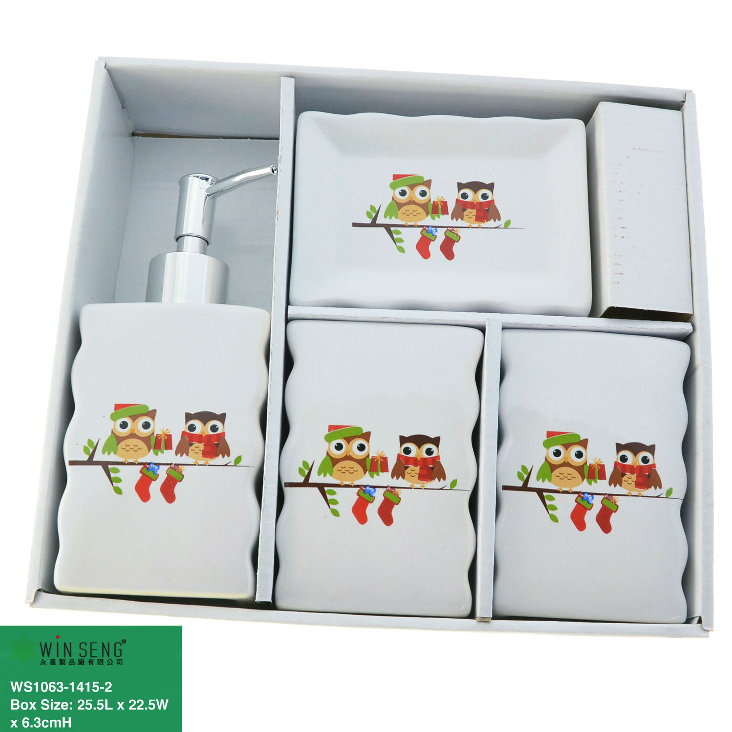 This bathroom set includes a toothbrush holder, a soap dish and a lotion dispenser and Tumbler.