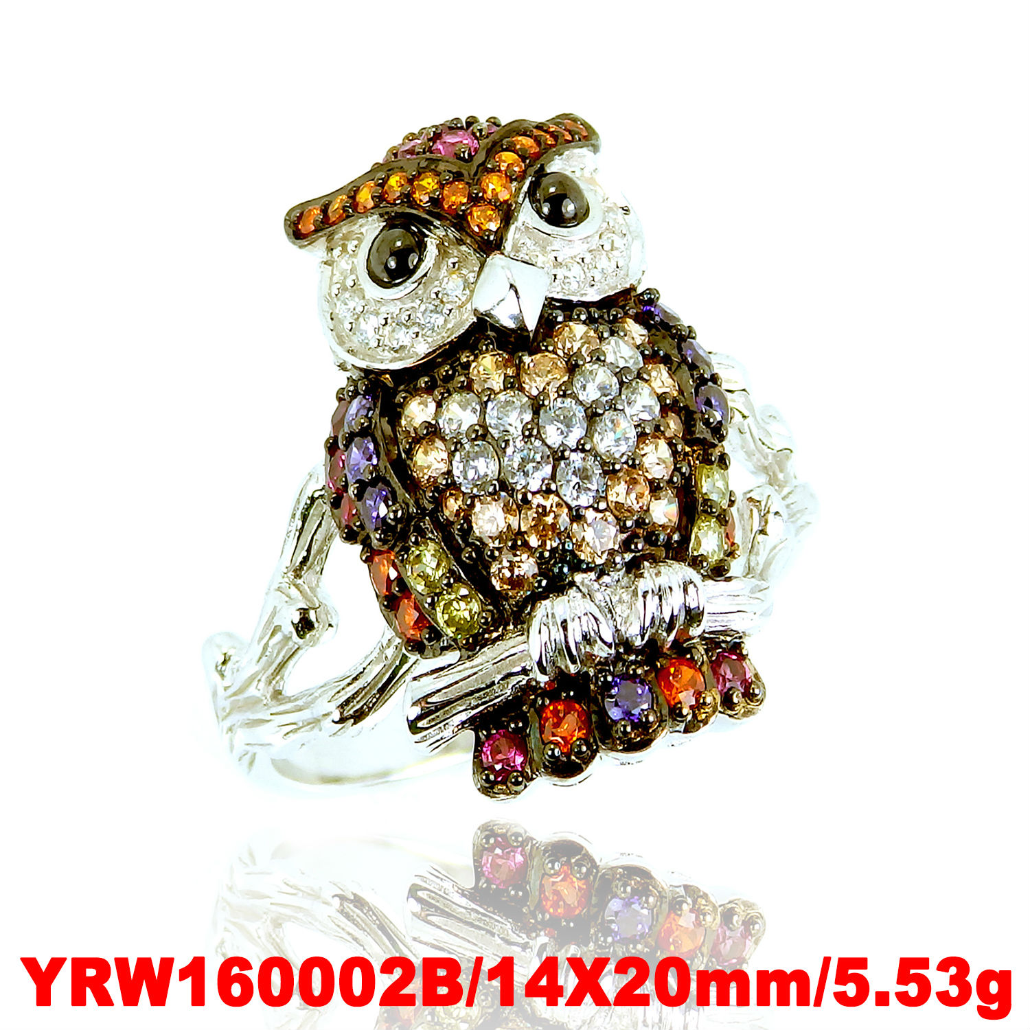 Owl Pave Multi Color Silver Ring