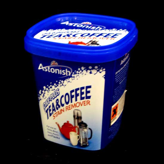 This cleaning powder adopts a special formula with extra oxygen. The mild cleaner gently removes tea and coffee stains from cups, saucers, pots and cutlery without the need of scrubbing. It is easy to use and gives a taint-free finish.