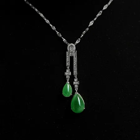 This necklace employs an elegant tassel-style double pendant design, embodying the geometric aesthetics of the Art Deco style.