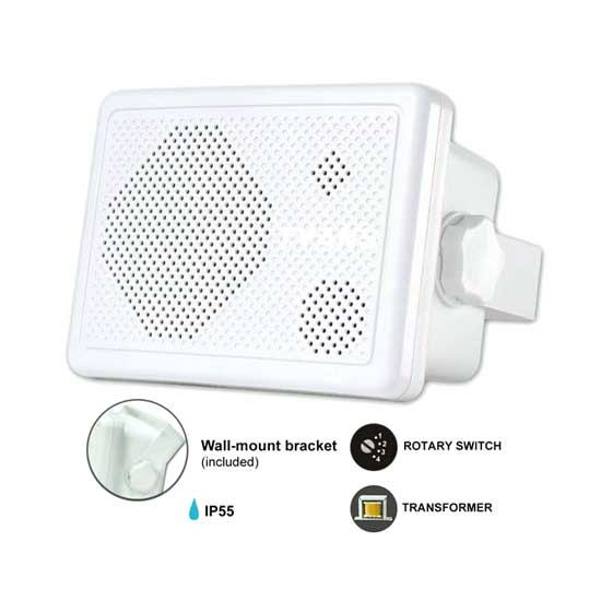 This chic PA speaker comes with a wall-mount bracket for easy installation. The IP55 rating guarantees wonderful water and dust resistance. This high quality PA speaker is ideal for conference rooms.