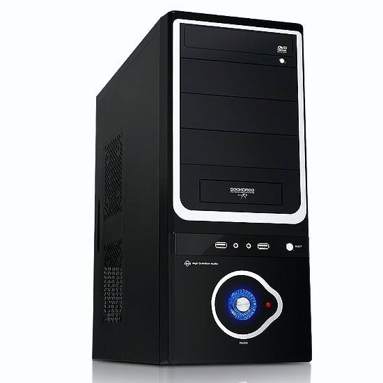 The computer case is exclusively manufactured with a sleek black surface. The subtle blue light on the front indicates the power status of the computer. The equipped motherboard can often be passively cooled due to its low power consumption architecture, making it excellent for home theater systems for eliminating the loud fan noise. The cooling fan extends the computer's life by preventing overheating of the electronic components within the casing.