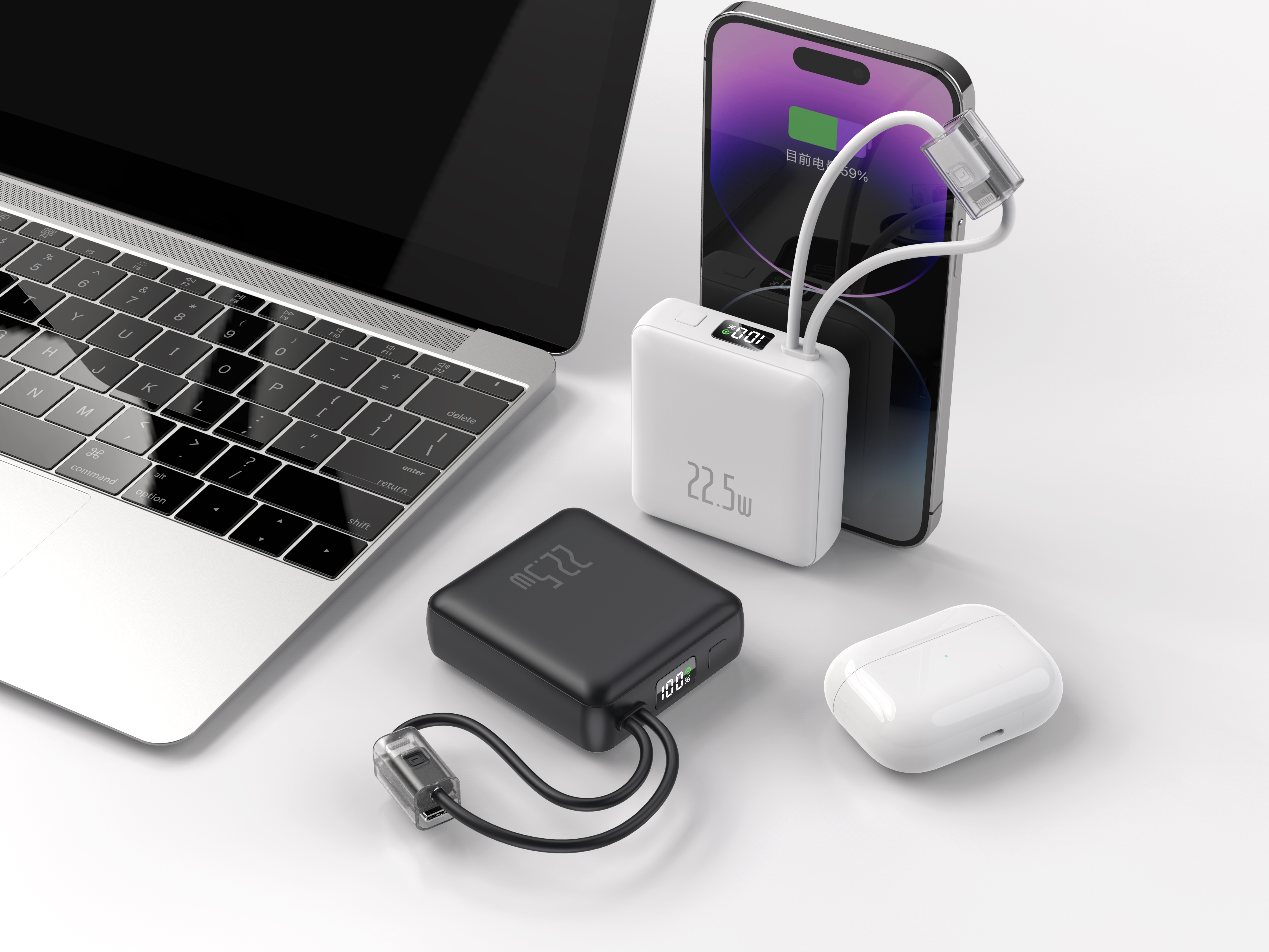 Inbuilt USB-C cable: output,5V/3A, 9V/2A, 12V/1.5A, 10V/2.25A(SCP)