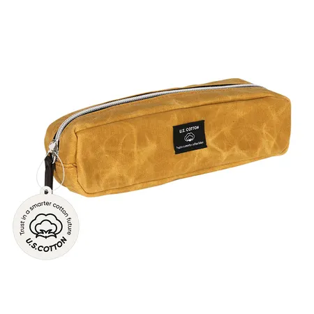 PENCIL CASE, 190*50*50MM, WAXED CANVAS, BLACK TAPE AND SILVER ZIPPER.