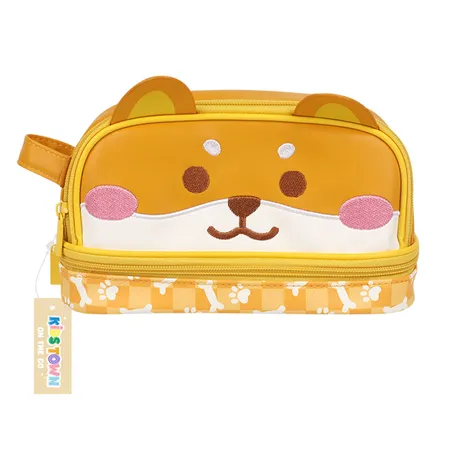 PENCIL CASE, 220*95*130MM, CORGI SHAPE DESIGN, YELLOW TAPE AND ZIPPER.