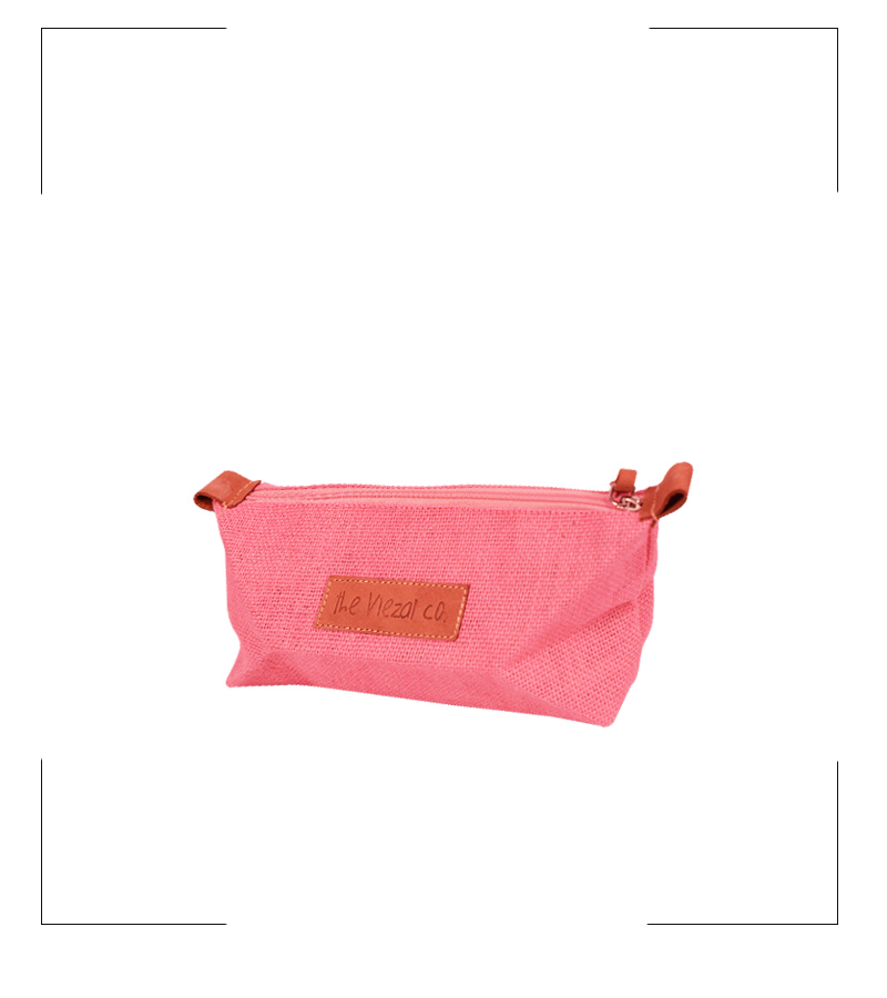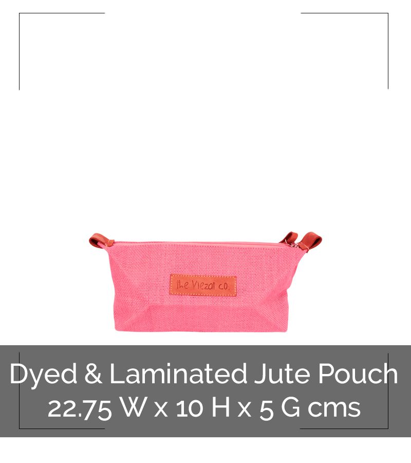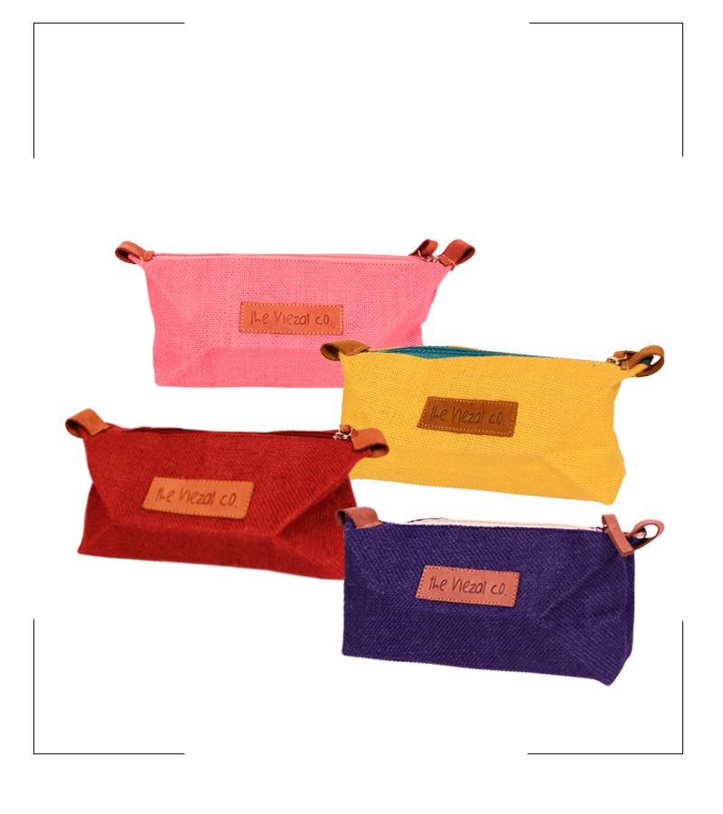 Dyed& Laminated Jute Pencil Pouch with Genuine Leather Attached & Puller with Tassel.