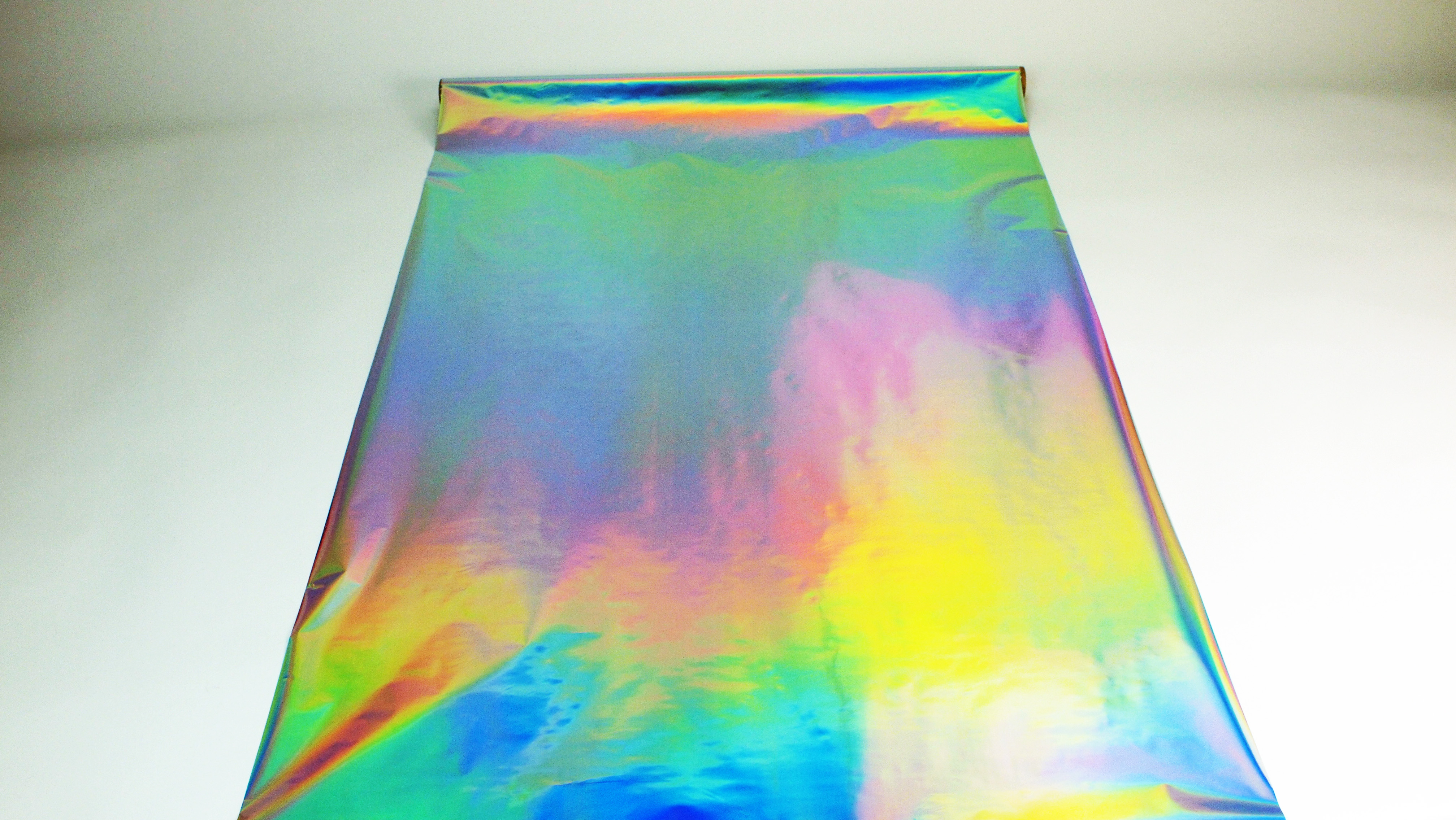 Feature of Rainbow pattern is100% true seamless (No gap, pitch and seam) so that the design is more flexible and tolerance of materials are less than traditional holographic film. Max width of rainbow pattern is1300mm.