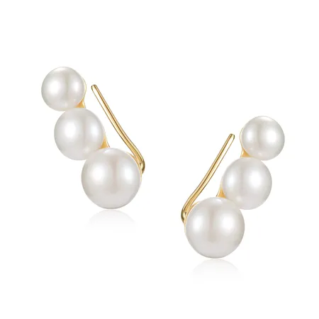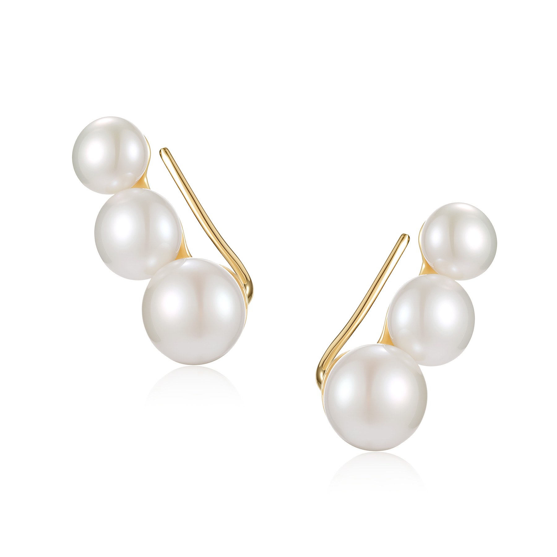 14K YELLOW GOLD EARRING CLIMBER WITH 5.5-7.5MM WHITE BUTTON FRESHWATER PEARL