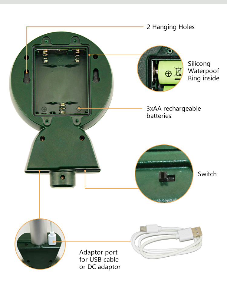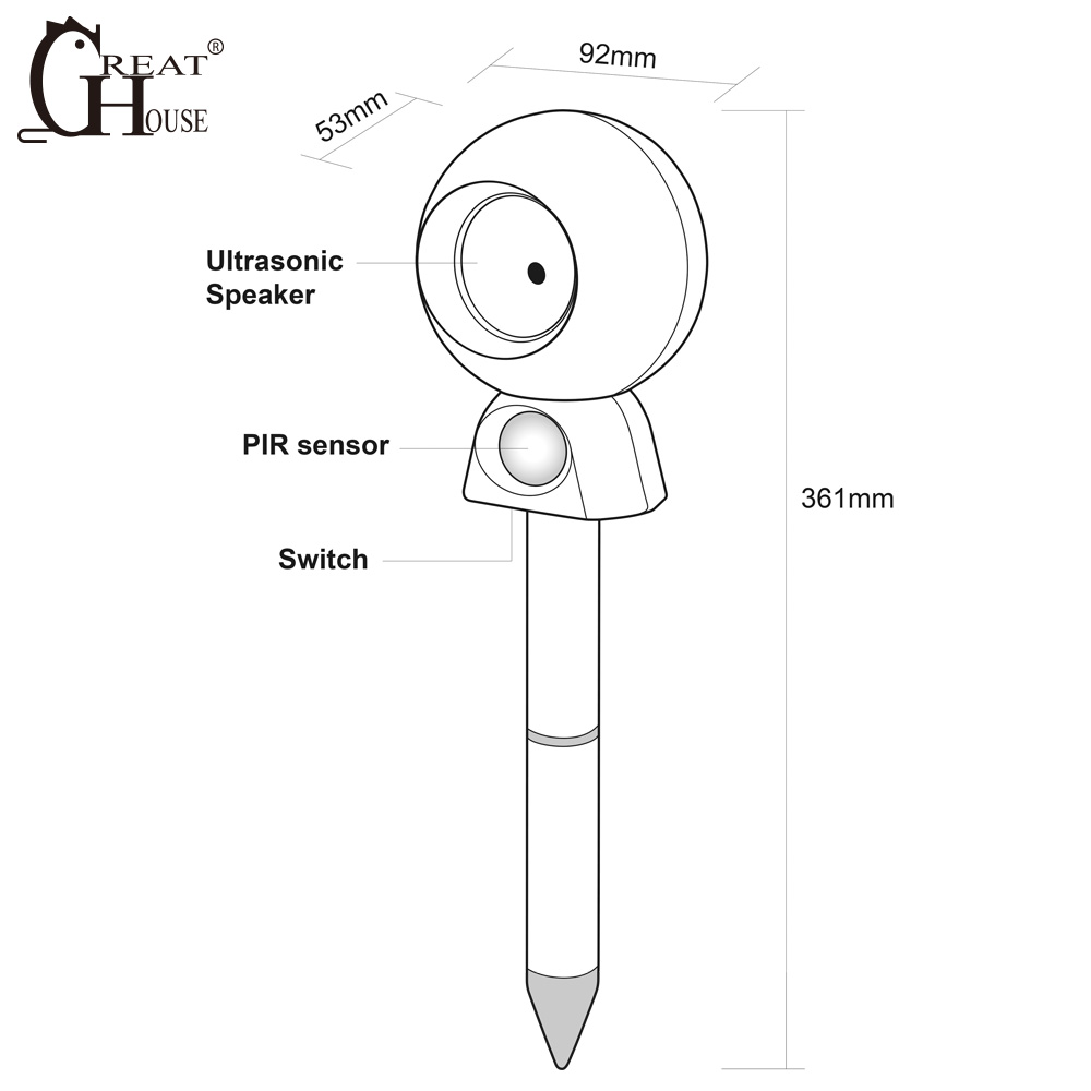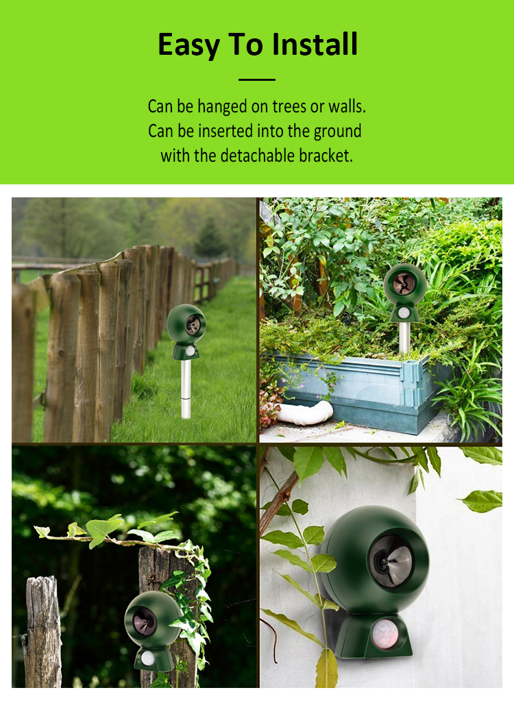 The PIR detects motion and triggers the ultrasonic speaker emitting a tone that people cannot hear but chases away common outdoor pests like mice, rats, skunks, dogs, cats, foxes, deer, raccoons, squirrels, martens, birds, bats and more.