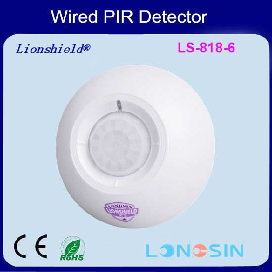 This is a wired PIR detector designed for wall or ceiling mounting. It promises a detecting angle of 360°. This quality PIR detector is anti-RFI and anti-pet.