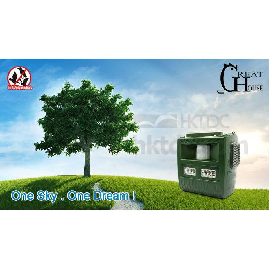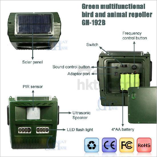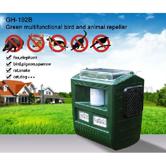 to deter unwanted birds, dogs, cats, boar, deer, mice, rats, raccoons, martens and other wild animals. The power is solar energy and no wire connected.