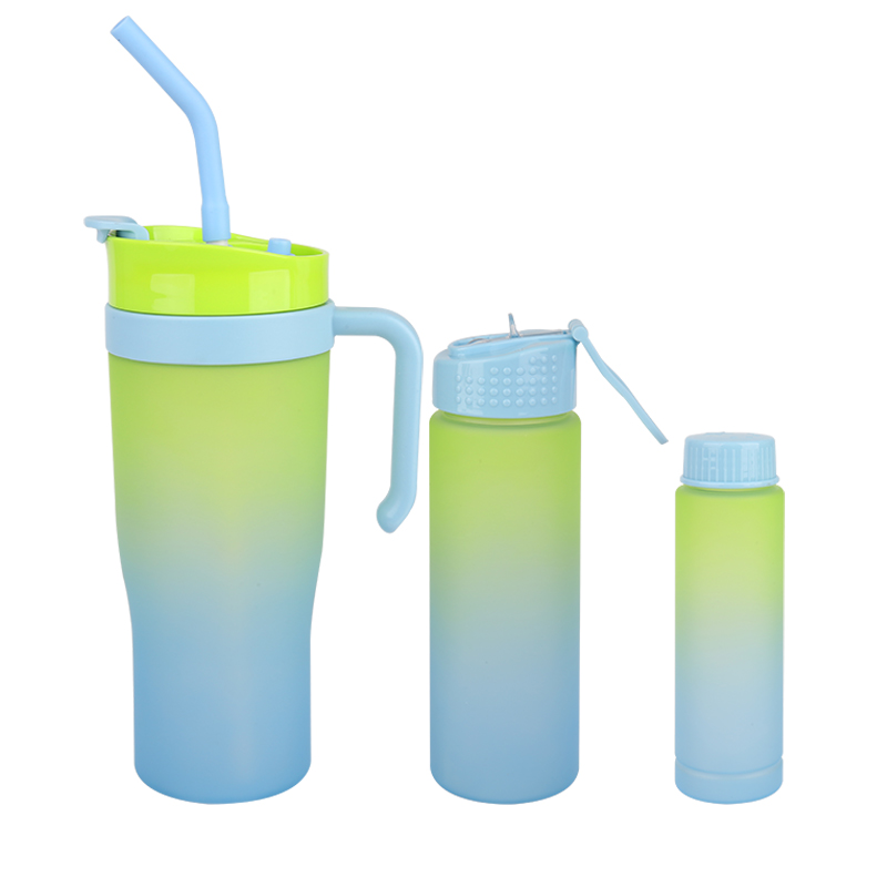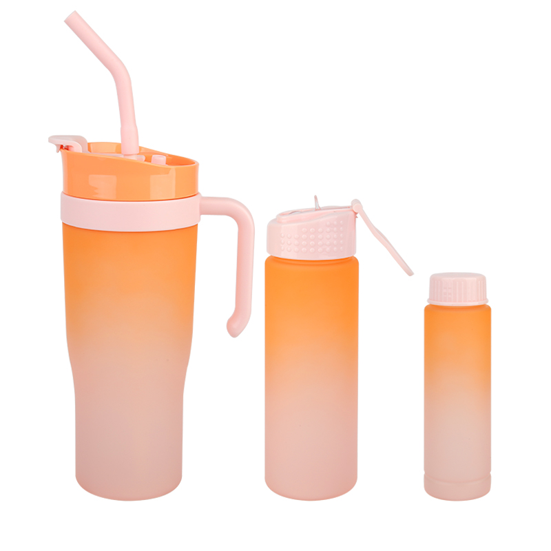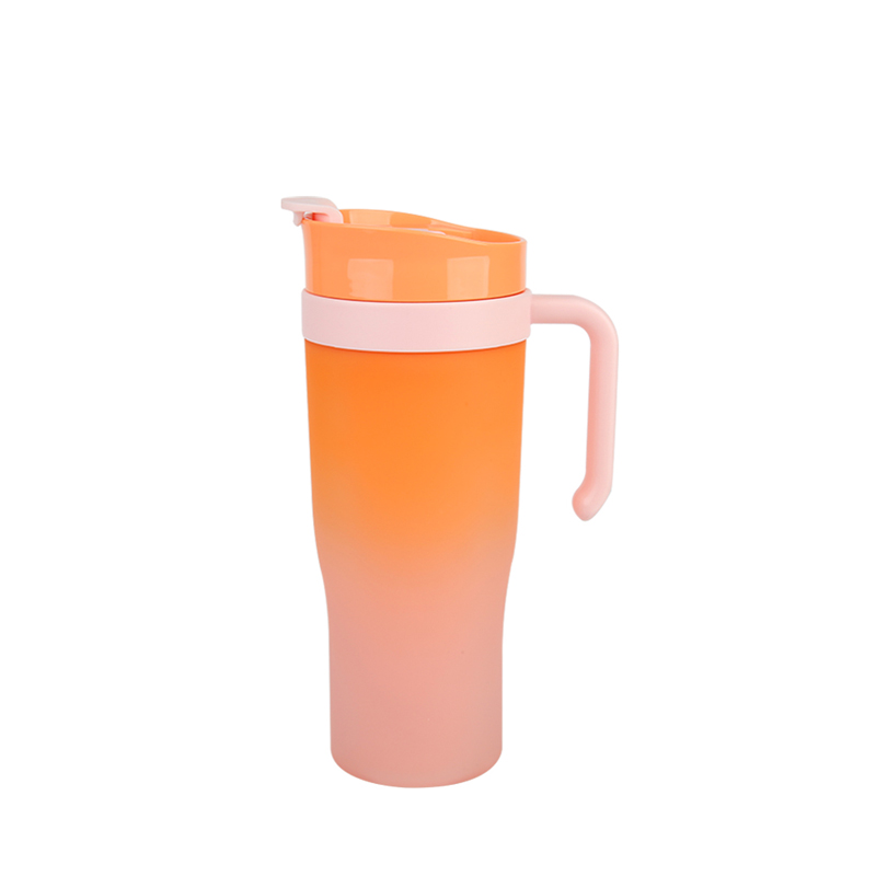 PLASTIC TUMBLER SET, φ98*251MM, AS, 1200ML, SPRAYED GRADIENT PAINT BODY, SOLID COLORED SCREW-ON LID, TWO WAYS TO DRINK, WITH SOLID COLORED HANDLE AND STRAW CONTAINS SILICONE NOZZLE.