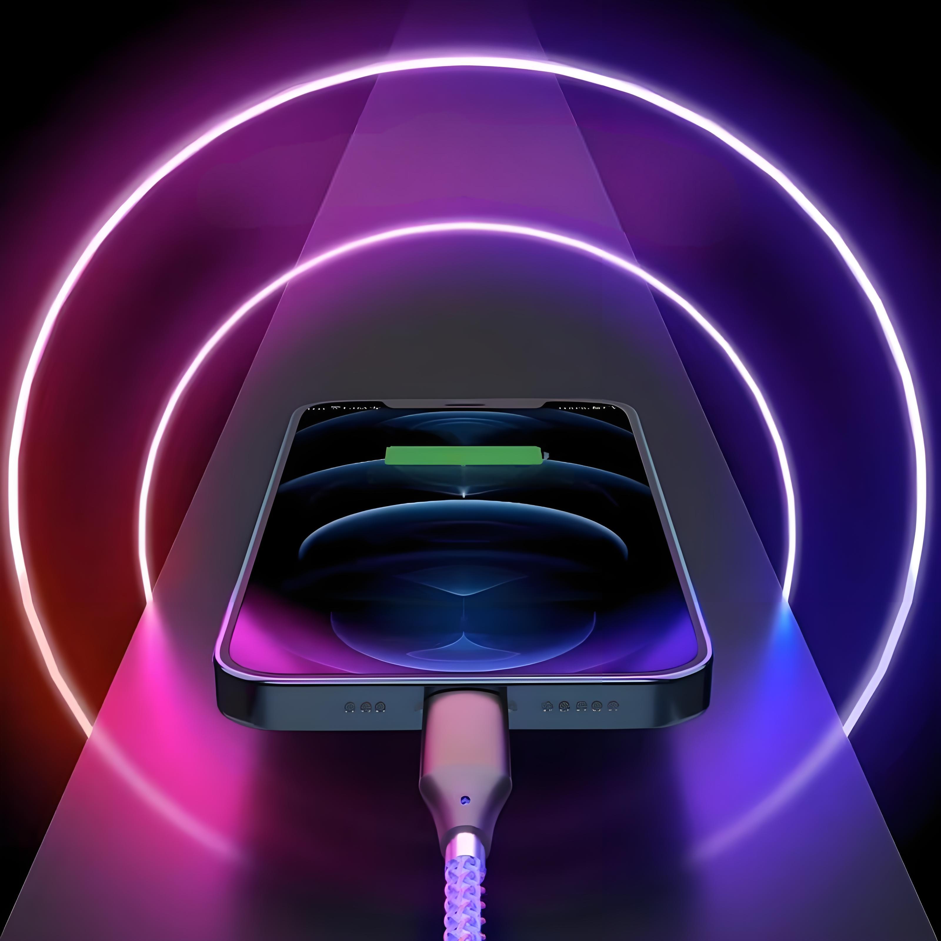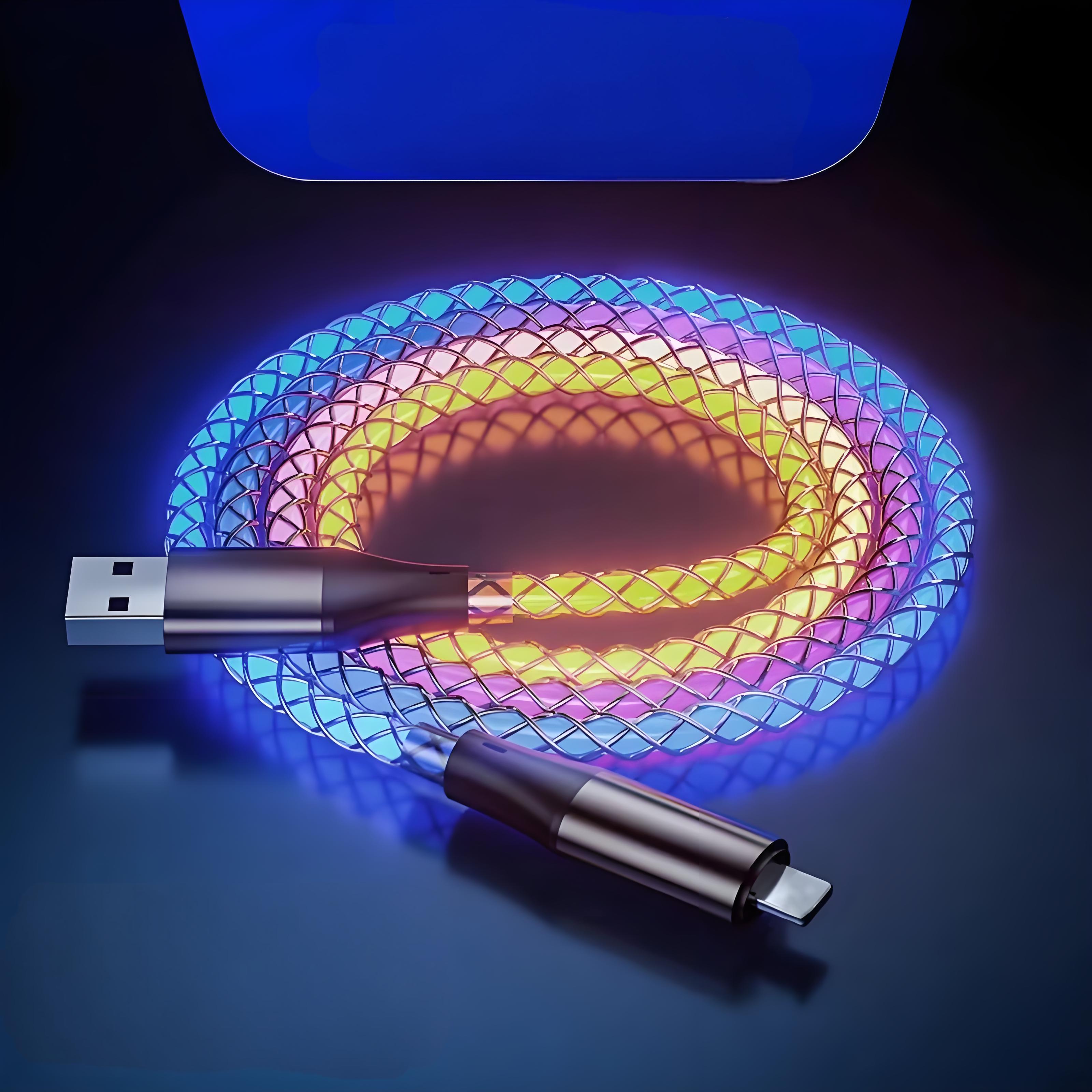 Transform your charging experience with this eye-catching LED USB Type-C cable featuring a stunning rainbow mesh design. The color-changing braided exterior not only provides durability but also creates a mesmerizing light show while you charge or sync your devices. The premium construction includes a robust USB-A connector on one end and USB Type-C on the other, perfect for modern smartphones, tablets, and other compatible devices. The tightly woven mesh covering protects against tangles and daily wear while adding a distinctive aesthetic appeal. This cable supports fast charging capabilities and reliable data transfer speeds, making it both functional and stylish. The illuminated design makes it easy to locate your charging cable in low-light conditions, while the reinforced connectors ensure a secure fit every time. Whether you're charging your device or transferring important files, this cable combines practicality with an impressive visual display that sets it apart from ordinary charging cords.