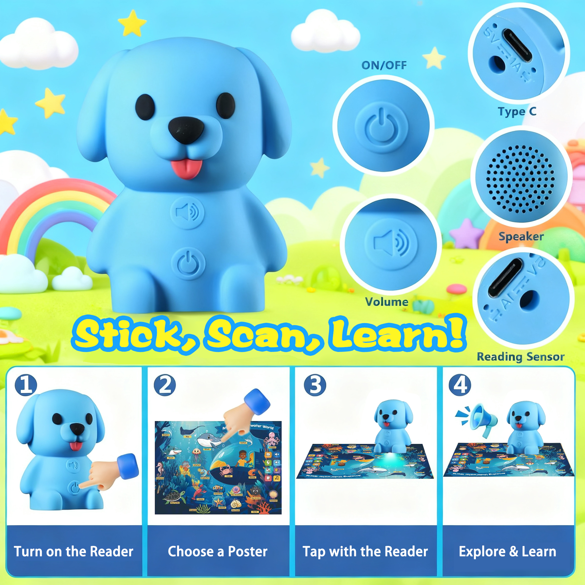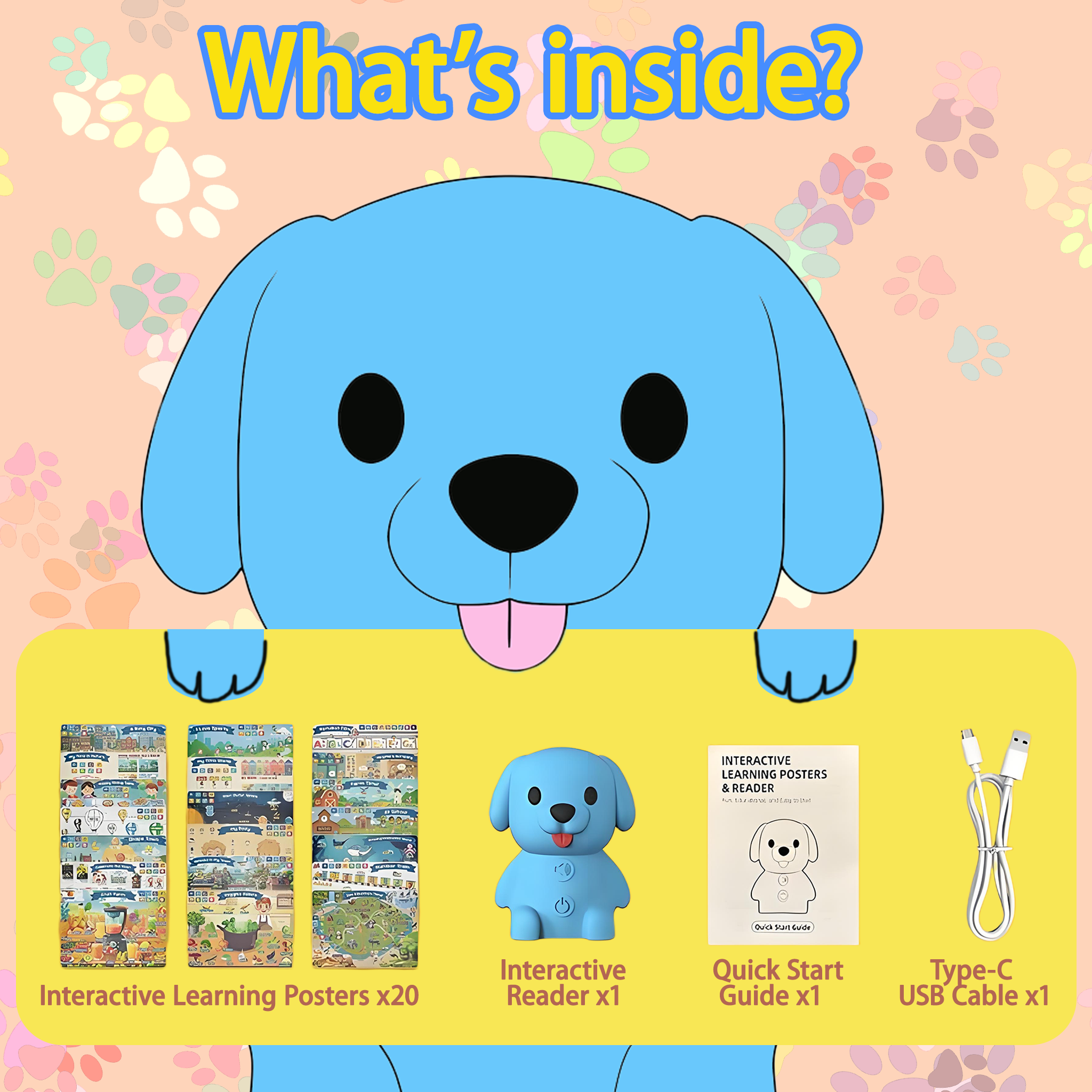 PLENTY MORE - Educational Learning Toy Set with 20 Posters, Blue Interactive Dog Reade Kids, Early Development