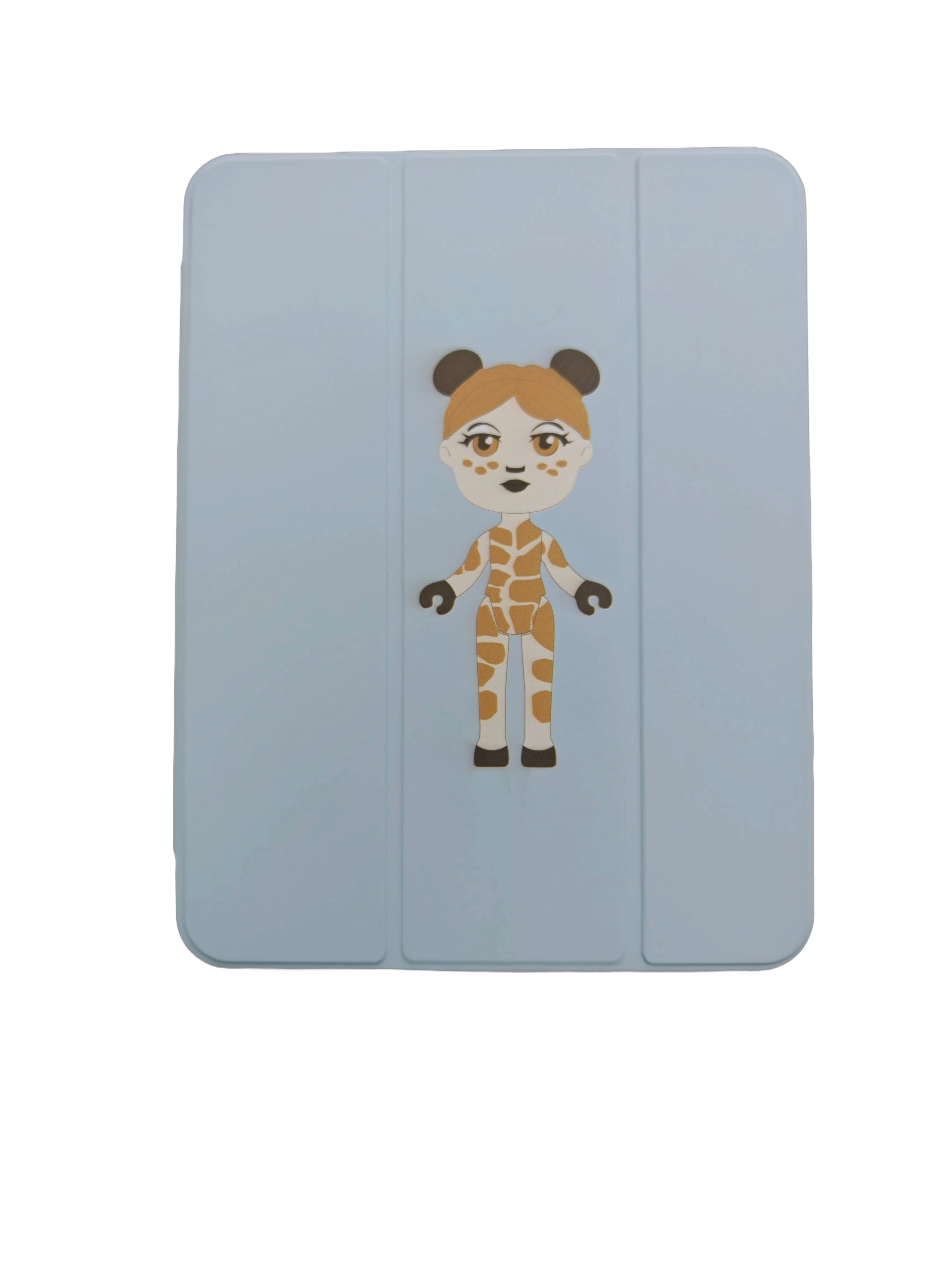 Transform your iPad into a kid-friendly companion with this charming light blue tablet case cover featuring an adorable giraffe character design. The tri-fold smart cover offers reliable protection while adding a playful touch to your device. The case's clever design includes precise cutouts for easy access to all ports and functions, while the sturdy construction helps guard against everyday bumps and scratches. The tri-fold cover can be positioned to create convenient viewing angles for watching videos or typing. Perfect for children and anyone who appreciates whimsical accessories, this protective case combines functionality with delightful aesthetics. The light blue background provides a soothing backdrop for the cute giraffe illustration, making it an appealing choice for both young users and the young at heart. Keep your tablet safe and stylish with this distinctive protective cover that's sure to bring smiles wherever it goes.