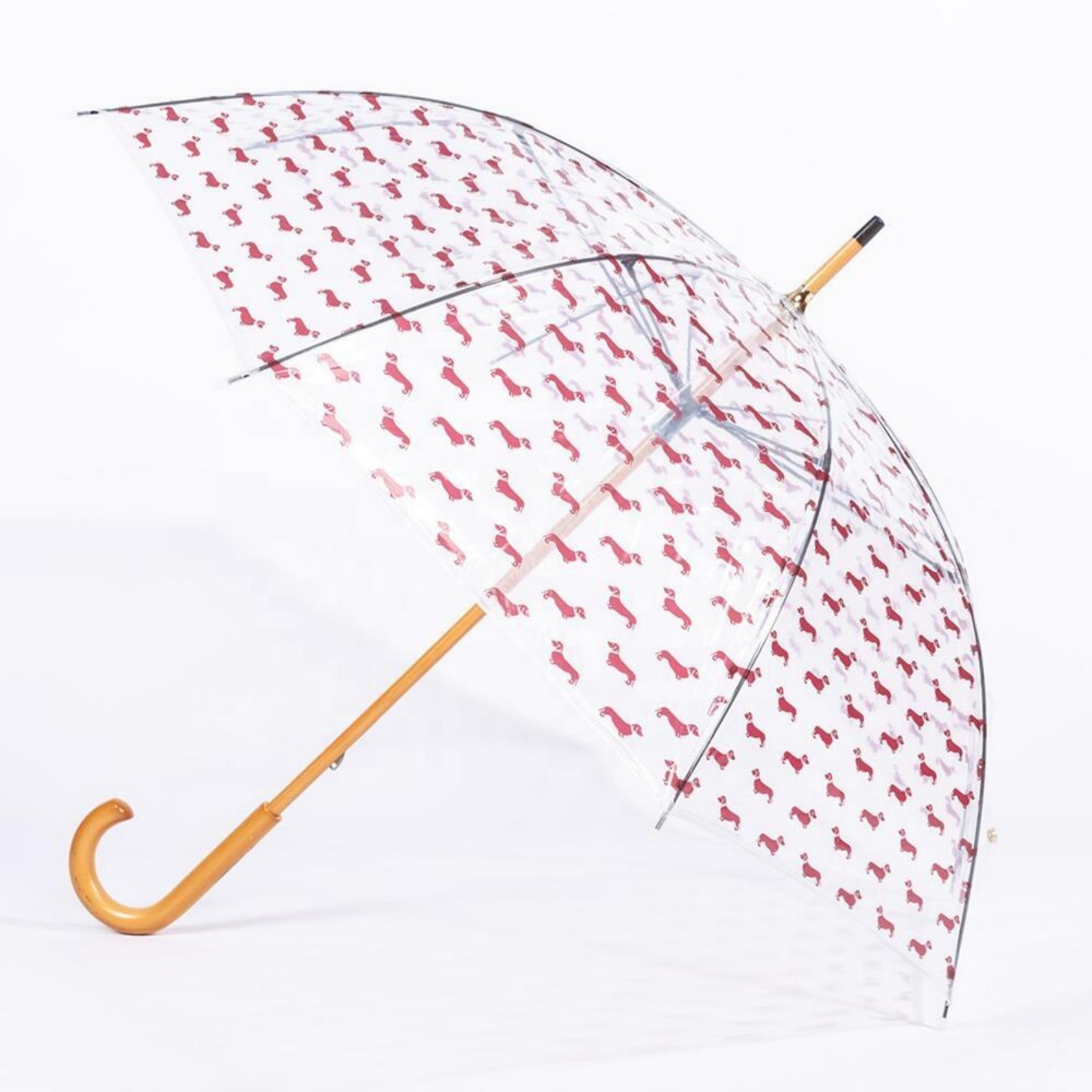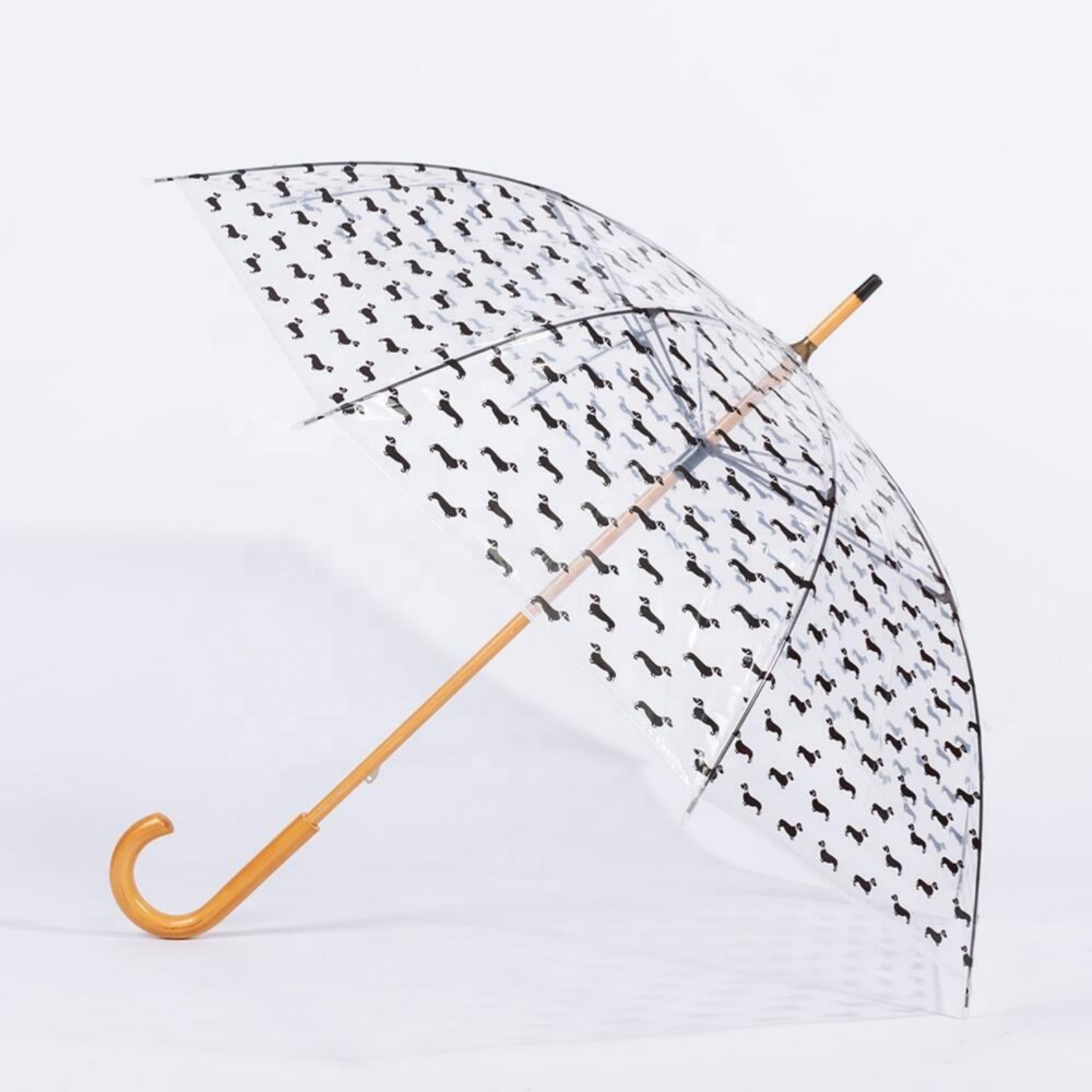 POE Transparent Printing Children Umbrella with Wooden Handle