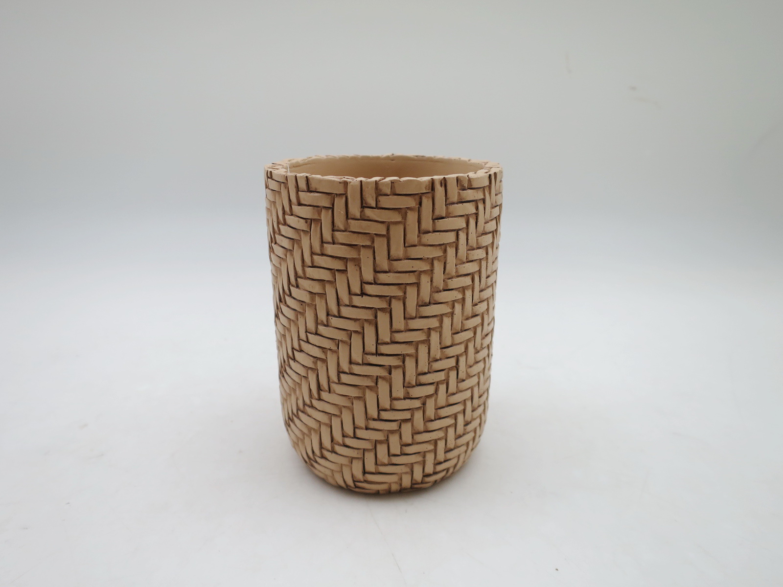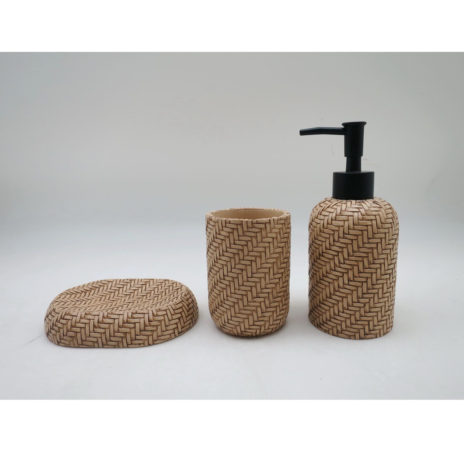 POLYRESIN BATHROOM ACCESSORIES SET RATTAN DESIGN