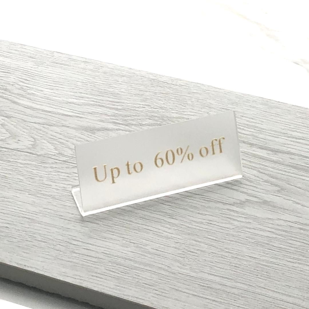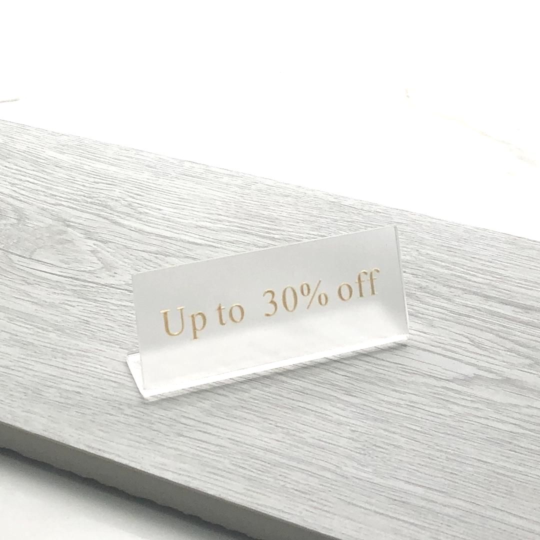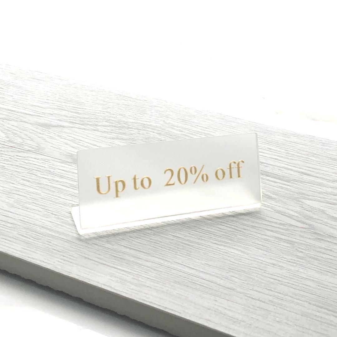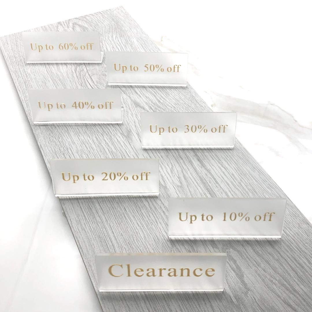 Increase the allure of your jewelries or other products with these one-of-a-kind acrylic signs. These signs are ideal for use in retails stores or in exhibitions to show your customers that your merchandises are on sale.