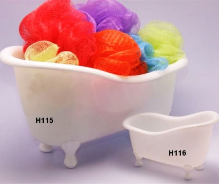 - Bathtub shaped container with feet for an interesting appearance.