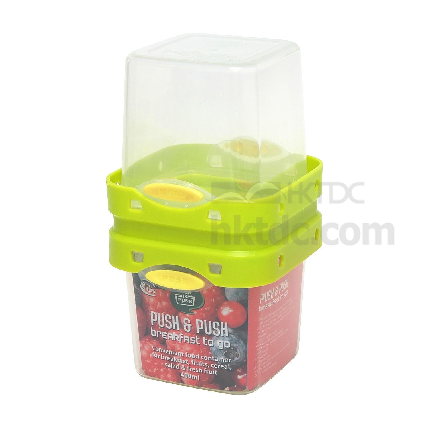 This pair of food containers comes in an interlocking design with a PP lid in the middle. Each container has a capacity of 400ml and has a clear body for users to check the stored contents. They are convenient to use and are great for breakfast, fruits, cereal, salad, fresh fruit, etc.
