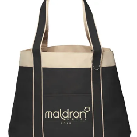 Package your merchandise in a classy style with this nonwoven PP bag. It provides ample space for storage and is decorated with logos on the exterior. This nonwoven PP bag has a pair of webbing handles for comfortable carrying and is great for promotional applications.