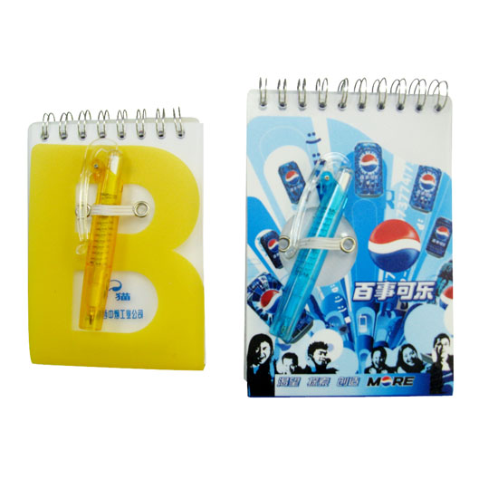 These fetching notebooks showcase a down-to earth design with customized logos, making them perfect for both personal and business uses. They are characterized by a vertical flap opening with spiral binding so that you can flip the pages smoothly. The book cover is configured with an elastic strap, which can hold the attached pen for enhanced functionality.
