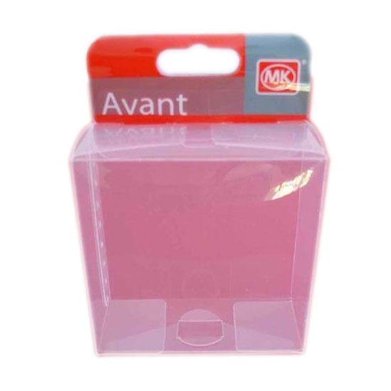Presented here is a square-shaped packaging box. Made with transparent material and a hanger, this box showcases your products effectively. This strong packaging box also protects your products from damage and dirt.
