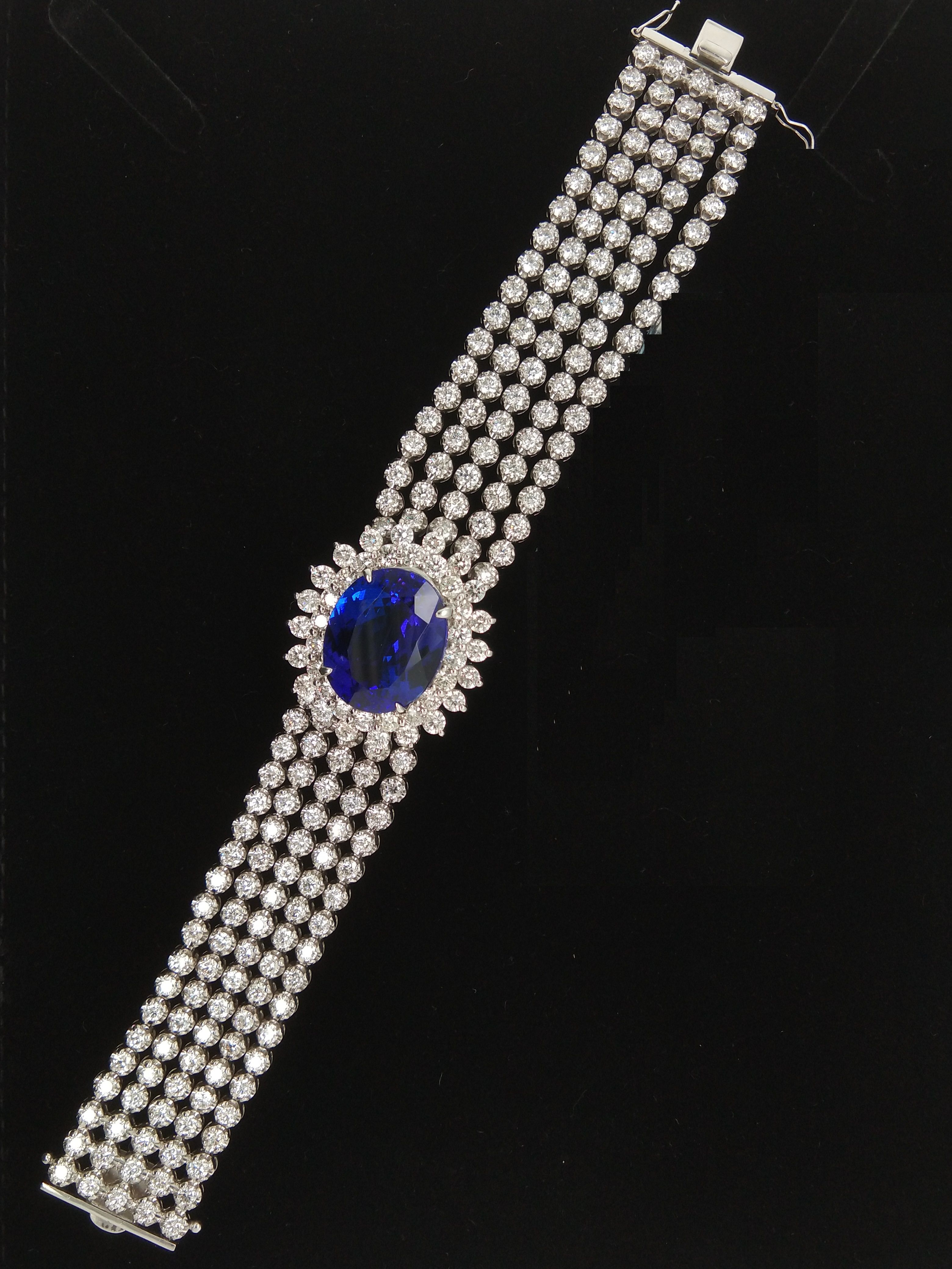 It is PT Tanza Bracelet. The Tanza stone is 20.43 carat , side stones are 16.27 carats & Total weight of the bracelet is 67.93 grams.